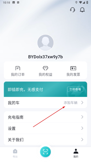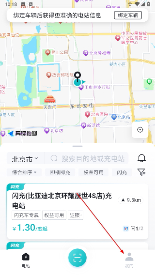 1、打開比亞迪閃充,點(diǎn)擊右下角我的進(jìn)入個(gè)人頁(yè)。