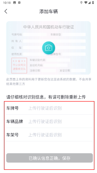 4、上傳行駛證識(shí)別信息,點(diǎn)擊保存完成添加。